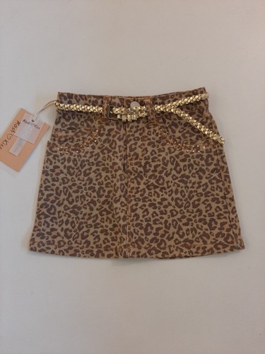 Gonna fantasia maculata in morbido cotone denim con cinta oro