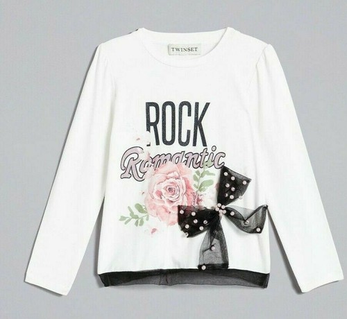 TWIN SET – Brutto Anatroccolo Abbigliamento 016 T-shirt in jersey con stampa grafica, fiocco in tulle maniche arricciate Originale con cartellino, proveniente da boutique abbigliamento bambino. NUOVA COLLEZIONE AUTUNNO INVERNO Informazioni utili fornite dalla ditta produttrice TAGLIA/ALTEZZA INDICATIVA BAMBINA 3 ANNI CM 100 6 ANNI CM 116