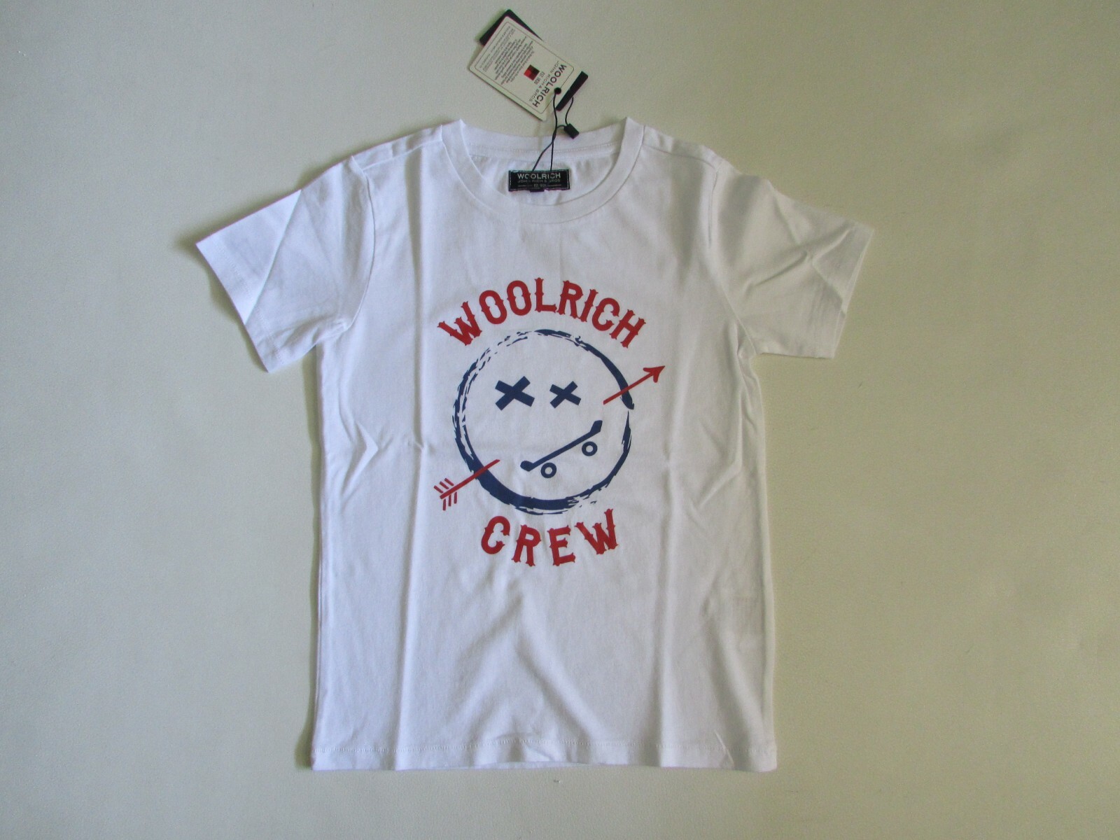 T-Shirt di colore bianco stampa woolrich Informazioni utili fornite dalla ditta produttrice TAGLIA/ALTEZZA INDICATIVA BAMBINO