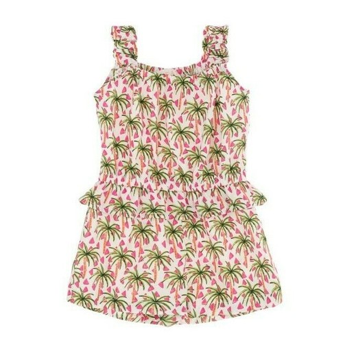 La tuta fantasia palme con shorts è caratterizzata da uno scollo elasticizzato con spalline arricciate e una ruche in vita. 100% Cotone Originale con cartellino, proveniente da boutique abbigliamento bambino. Informazioni utili fornite dalla ditta produttrice TAGLIA/ALTEZZA INDICATIVA BAMBINA