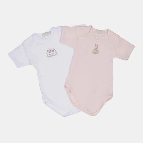 Set di 2 body in interlock: uno color rosa con delicata stampa sul davanti,