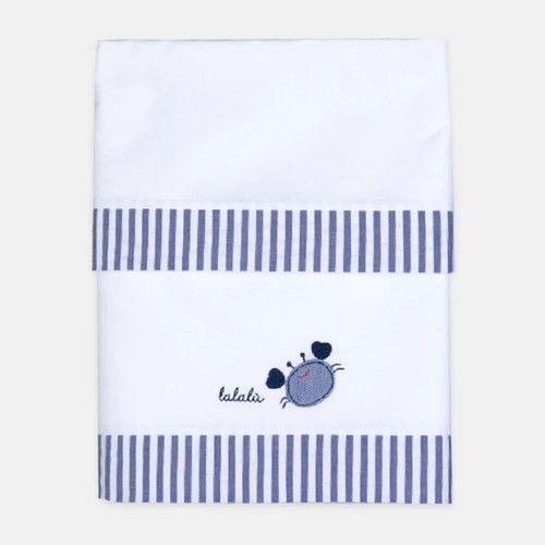 Set lenzuola 3 pezzi in cotone. Comprende: una federa per cuscino con fascia in tessuto a righe azzurre, un lenzuolino impreziosito dal ricamo dell’adorabile piccolo granchio e fascia in tessuto a righe azzurre e un coprimaterasso con angoli elastici. Dimensioni : federa 40×30 cm, lenzuolino 80x120cm, coprimaterasso con angoli elastici 40×70 cm Originale con cartellino, proveniente da boutique abbigliamento bambino. Informazioni per l’AcquistoIn caso di Acquisto Ricordate di Comunicare: